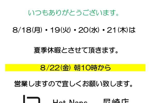 夏季休暇のお知らせ